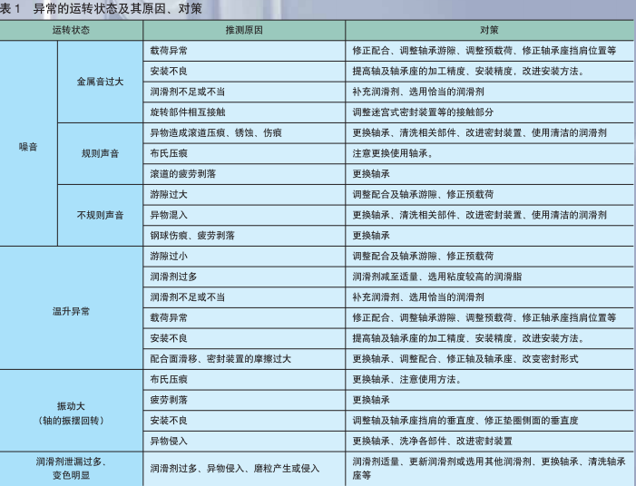 检查轴承的旋转声音,振动,温度以及润滑剂的性状,判断何时需要补充或更换润滑剂。