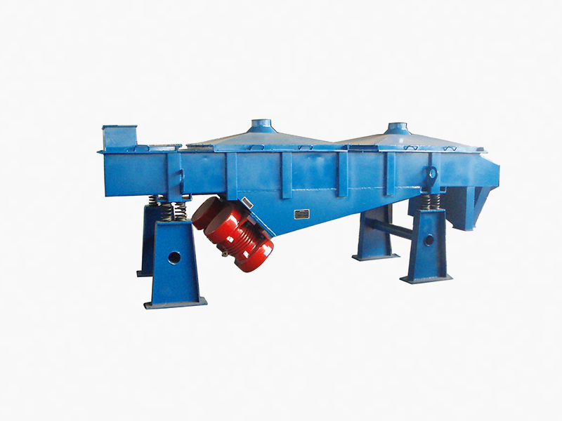 ZZS型系列直線振動篩是雙振動電機驅動。當兩臺振動電機做同步、反向旋轉時,其偏心塊所產生的激振力在平行于電機軸線的方向相互抵消,在垂直于電機軸的方向疊為一合力,因此篩機的運動軌跡為一直線。兩電機軸相對篩面有一傾角,在激振力和物料自重力的合力作用下,物料在篩面上被拋起跳躍式向前作直線運動,加之合理的匹配篩網,從而達到對物料進行篩選和分級的目的。